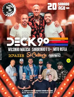 O grupo preparou um show muito animado e cheio de hits, com o melhor de seu repertório. Além do Deck 90, o bar contará também com a participação do DJ Cazuza e dos Grupos 20Fazer e Só Cadência.